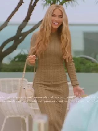 Chrishell Stause on Selling Sunset on Netflix was spotted wearing this green cable knit sweater dress on Selling Sunset on episode 'It's Getting Personal' (5x07) in Apr 2022. Chrishell's Dress is the Eire Open Back Cable Knit Dress by Ronny Kobo.