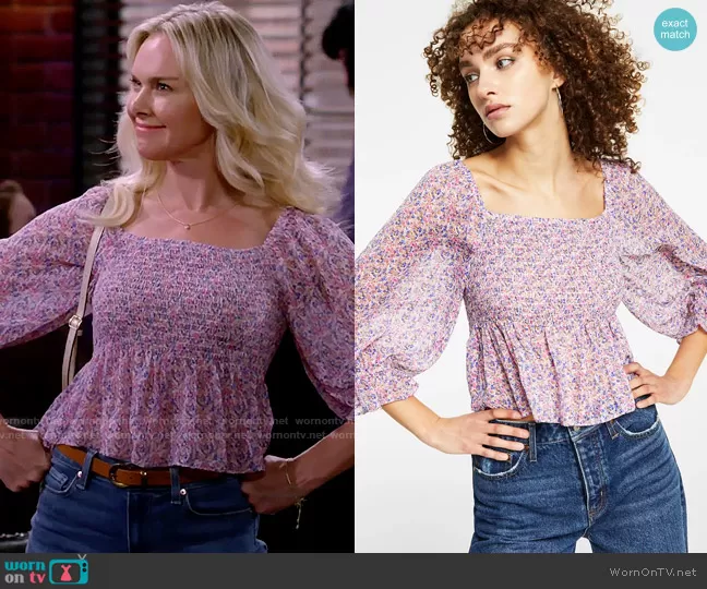 Nicole (played by Laura Bell Bundy) on Call Me Kat on Fox was spotted wearing this pink floral smocked top on Call Me Kat on episode 'Call Me Flatch' (2x17) in Apr 2022. Nicole's Top is the Smocked Top by Lucy Paris.