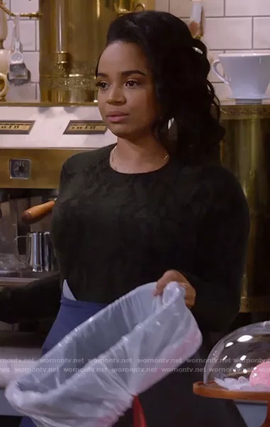 Randi (played by Kyla Pratt) on Call Me Kat on Fox was spotted wearing this green snake print sweater on Call Me Kat on episode 'Call Me Flatch' (2x17) in Apr 2022. Randi's Sweater is the Snake Print Cashmere Sweater by Aqua.