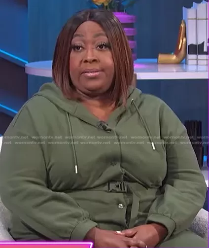 Loni Love on E! News on E! was spotted wearing this green belted jumpsuit on E! News Nightly Pop on Apr 29 2022's episode. Loni's Jumpsuit is the Utility Knit Hooded Cotton Jumpsuit by Juicy Couture.