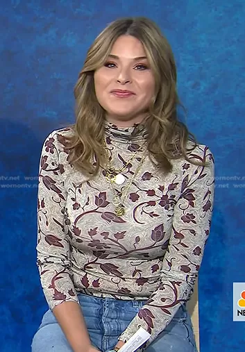 Jenna Bush Hager on Today on NBC was spotted wearing this floral turtleneck top on Today on Aug 25 2022's episode. Jenna's Top is the Aurelia Turtleneck Top by Ulla Johnson.
