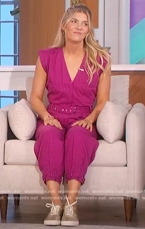 Amanda Kloots on The Talk on CBS was spotted wearing this purple belted jumpsuit on The Talk on Apr 12 2022's episode. Amanda's Jumpsuit is the Sahara Jumpsuit by Rachel Comey.