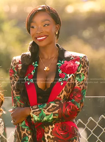 Chelsea Lazkani on Selling Sunset on Netflix was spotted wearing this Chelsea’s leopard blazer and skirt on Selling Sunset on episode 'She's Your Problem Too' (5x08) in Apr 2022. Chelsea's Jacket is the Leopard Print Blazer by Dolce & Gabbana . Chelsea's Skirt is the Animal Print Rose Bud Skirt by Dolce & Gabbana . Chelsea's Shoes is the Suede Platform Sandals by Versace . Chelsea's Necklace is the Frivole pendant by Van Cleef & Arpels . Chelsea's Earrings is the Frivole Earrings Small Model by Van Cleef & Arpels . Chelsea's is the .