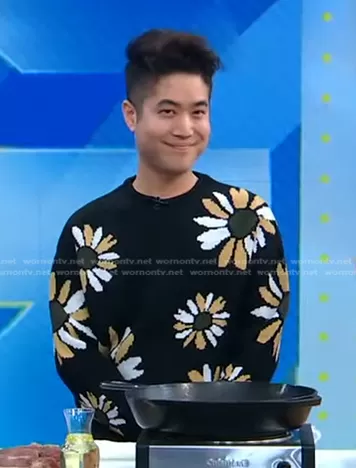 on Good Morning America on ABC was spotted wearing this black floral sweater on Good Morning America on May 02 2022's episode. 's Sweater is the Knit Oversized Sweater with Floral Design by Asos.