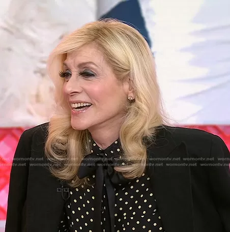 on Today on NBC was spotted wearing this black polka dot tie neck blouse on Today on May 02 2022's episode.