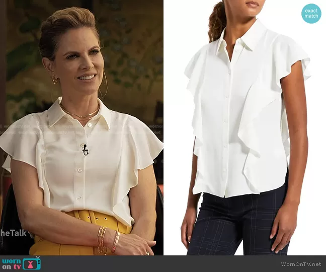 Ruffle Sleeve Silk Blouse by Theory worn by Natalie Morales on The Talk