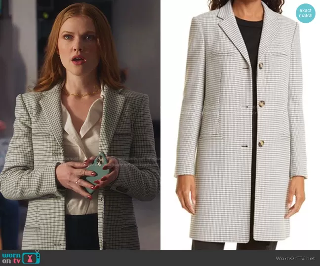 Taylor Kelly (played by Megan West) on 9-1-1 on Fox was spotted wearing this grid check coat on 9-1-1 on episode 'May Day' (5x16) in May 2022. Taylor's Coat is the Checkered Three-Button Coat by Club Monaco.