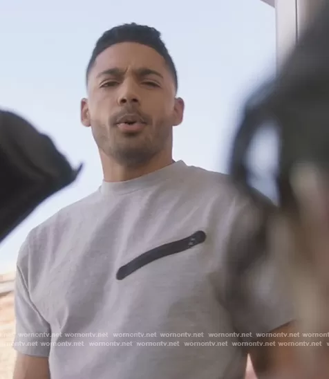 Jordan Baker (played by Michael Evans Behling) on All American on CWTV was spotted wearing this gray zipper tee on All American on episode 'Hate Me Now' (4x17) in May 2022. Jordan's Top is the Zipper Tee by Nike.