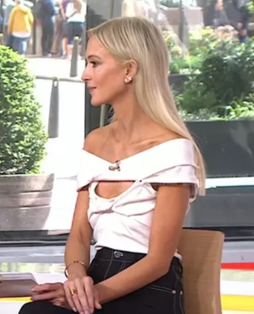 on Today on NBC was spotted wearing this white twisted off-shoulder top on Today on May 03 2022's episode. 's Top is the Addison Twist Detail Cutout Off the Shoulder Blouse by Et Ochs.