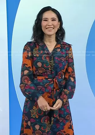 Vicky Nguyen on Today on NBC was spotted wearing this navy tiger print dress on Today on Sep 01 2023's episode. Vicky's Dress is the Yamei Dress in Navy Tiger Print by Gravitas.