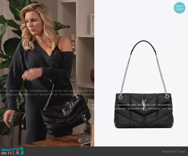 Brianna (played by June Raphael) on Grace and Frankie on Netflix was spotted wearing this black quilted bag on Grace and Frankie on episode 'The Prediction' (7x09) in May 2022. Brianna's Bag is the Puffer Small Chain Bag in Quilted Lambskin by Saint Laurent.