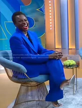 on Good Morning America on ABC was spotted wearing this blue blazer and pants on Good Morning America on May 05 2022's episode. 's Jacket is the Tailored Patch Pocket Jacket by Scanlan Theodore . 's Pants is the Tailored High Waist Trouser by Scanlan Theodore.