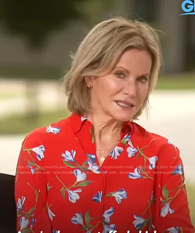 on Good Morning America on ABC was spotted wearing this red floral blouse on Good Morning America on May 05 2022's episode. 's Top is the Anderson Floral Button-Down Shirt by Rag & Bone.