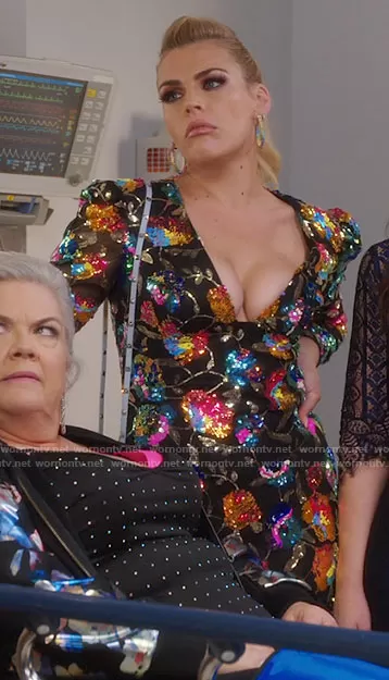 Summer Dutkowsky (played by Busy Philipps) on Girls5eva on Peacock was spotted wearing this floral sequin mini dress on Girls5eva on episode 'Album Mode' (2x01) in May 2022. Summer's Dress is the Penelope Dress by Helsi.