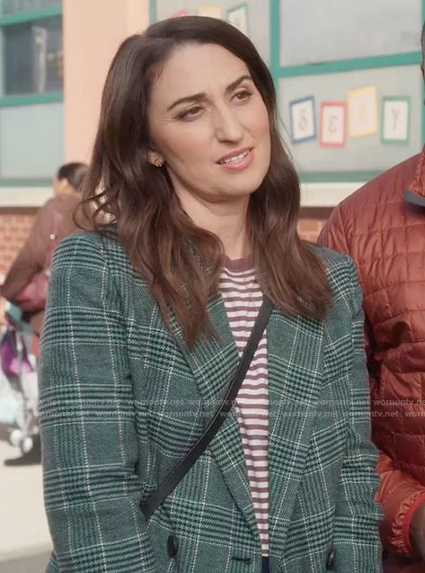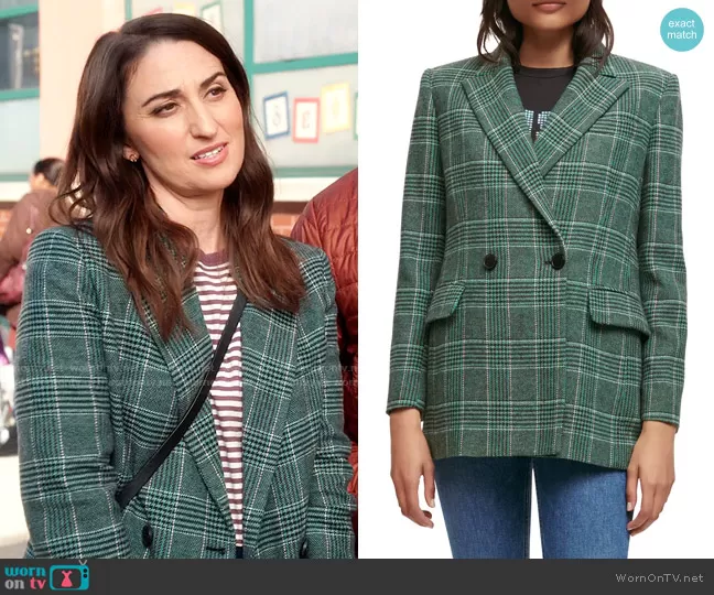 Dawn Solano (played by Sara Bareilles) on Girls5eva on Peacock was spotted wearing this green plaid blazer on Girls5eva on episode 'Album Mode' (2x01) in May 2022. Dawn's Jacket is the Vislanda Plaid Jacket by Maje.