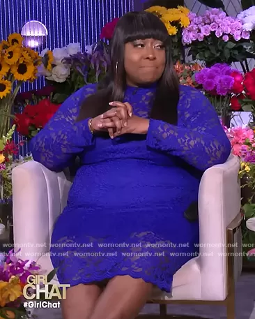 Curve lace midi dress in cobalt blue by ASOS worn by Loni Love on The Real