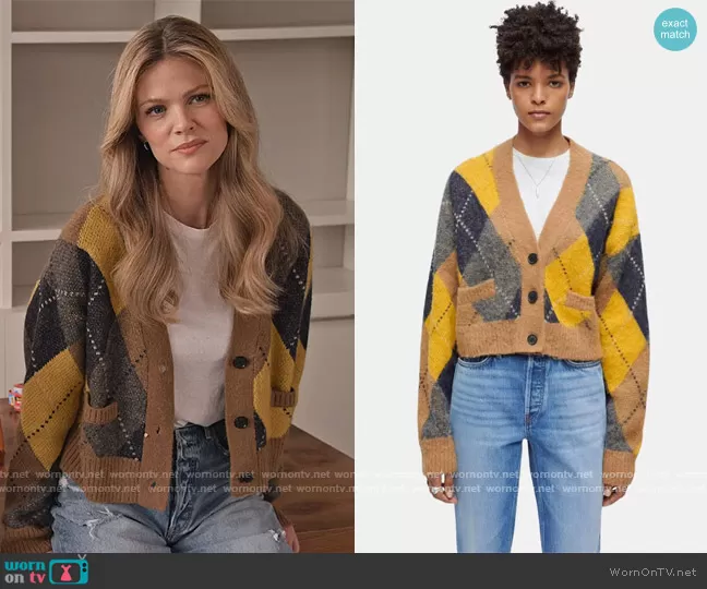 Mallory (played by Brooklyn Decker) on Grace and Frankie on Netflix was spotted wearing this argyle cardigan on Grace and Frankie on episode 'The Beginning' (7x16) in May 2022. Mallory's Sweater is the 90s Oversized Crop Cardigan by Re/done.