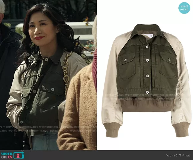 Melody Bayani (played by Liza Lapira) on The Equalizer on CBS was spotted wearing this green and khaki bomber jacket on The Equalizer on episode 'What Dreams May Come' (2x17) in May 2022. Mel's Jacket is the Panelled Bomber Jacket by Sacai.