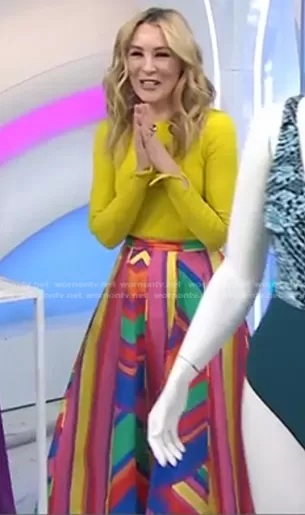 Chassie Post on Today on NBC was spotted wearing this printed midi skirt on Today on Jul 13 2023's episode. Chassie's Skirt is the Brunas Stripe Midi Skirt by Farm Rio.