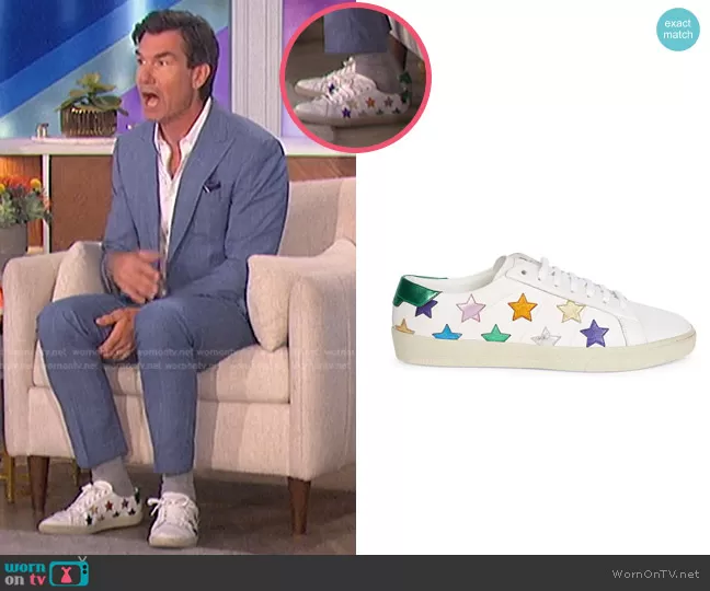 Jerry O'Connell on The Talk on CBS was spotted wearing this multicolor star sneakers on The Talk on May 09 2022's episode. Jerry's Shoes is the California Stars Leather Sneakers by Saint Laurent.