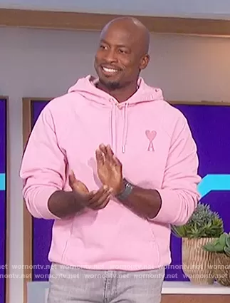 Akbar Gbajabiamila on The Talk on CBS was spotted wearing this pink hoodie on The Talk on May 12 2022's episode. Akbar's Sweater is the Ami de Coeur Organic Cotton Hoodie by Ami Paris.