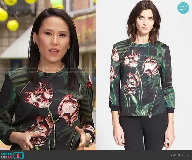 Vicky Nguyen on Today on NBC was spotted wearing this black floral sweatshirt on Today on May 31 2024's episode. Vicky's Sweater is the Errin Sweatshirt by Ted Baker.