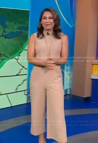 Ginger Zee on Good Morning America on ABC was spotted wearing this beige cropped top and pants on Good Morning America on Jun 17 2024's episode. Ginger's Set is the Two Piece Culotte Set by Maggy London.