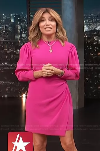 Kit Hoover on Access Hollywood on NBC was spotted wearing this pink ruched side dress on Access Hollywood on May 13 2022's episode. Kit's Dress is the Jane Dress by A.L.C..