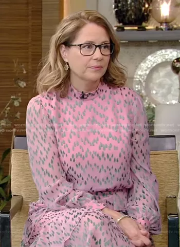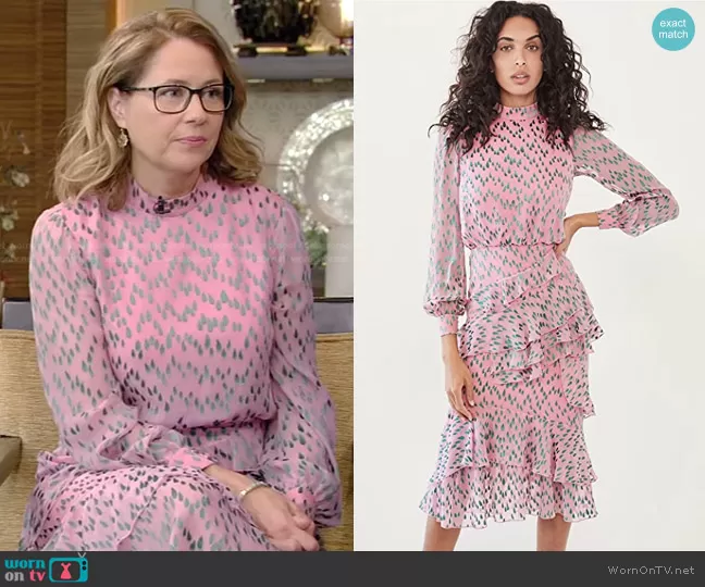 on Live with Kelly and Mark on Disney ABC Home Entertainment was spotted wearing this pink ruffle dress on Live with Kelly and Ryan on May 17 2022's episode. 's Dress is the Isa Dress by Saloni.