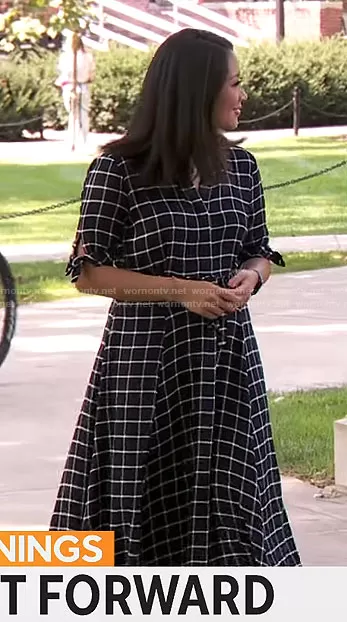 Nancy Chen on CBS Mornings on CBS was spotted wearing this black checked shirtdress on CBS Mornings on Nov 12 2024's episode. Nancy's Dress is the Plaid Maxi Shirtdress by Calvin Klein .