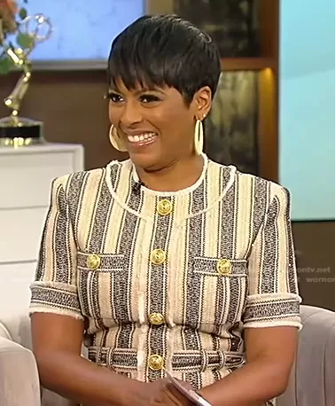 Striped Button-Embellished Mini-Dress by Balmain worn by Tamron Hall on Tamron Hall Show