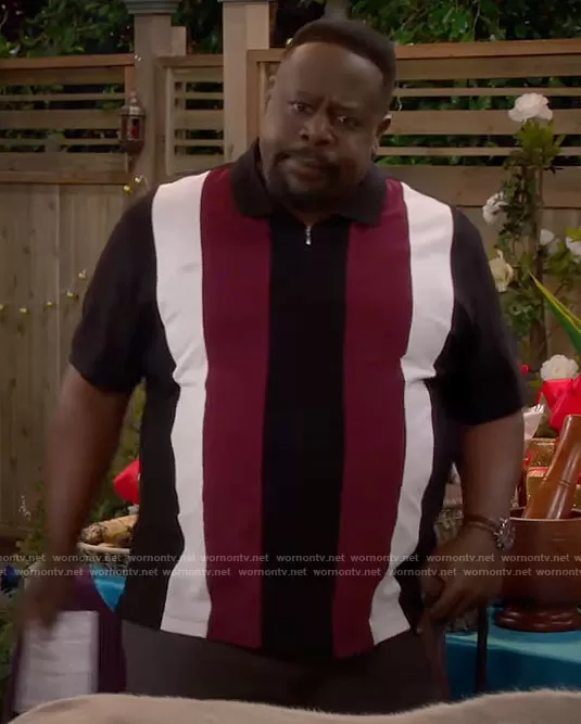 Calvin (played by Cedric The Entertainer) on The Neighborhood on CBS was spotted wearing this vertical striped polo shirt on The Neighborhood on episode 'Welcome to the Ring' (4x22) in May 2022. Calvin's Shirt is the Eton Stripe Quarter Zip Cotton Piqué Polo by Johnny Bigg.