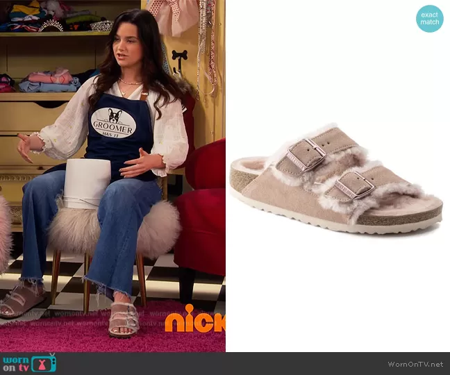 Lex (played by Jules LeBlanc) on Side Hustle on Nickeldeon was spotted wearing this shearling sandals on Side Hustle on episode 'Groomer Has It' (2x15) in May 2022. Lex's Shoes is the Arizona Shearling Sandals by Birkenstock.