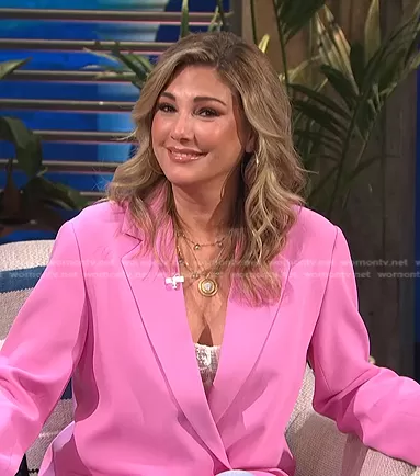 on E! News on E! was spotted wearing this Daisy Fuentes’s pink blazer on E! News Daily Pop on May 25 2022's episode. 's Jacket is the Vestale Blazer by Maje.