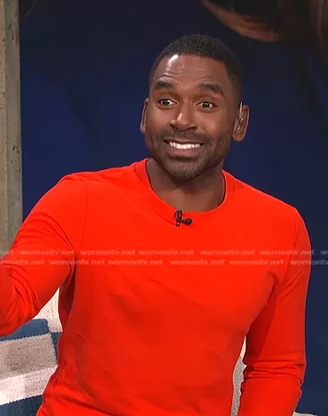 Justin Sylvester on E! News on E! was spotted wearing this red fitted sweater on E! News Daily Pop on May 25 2022's episode.
