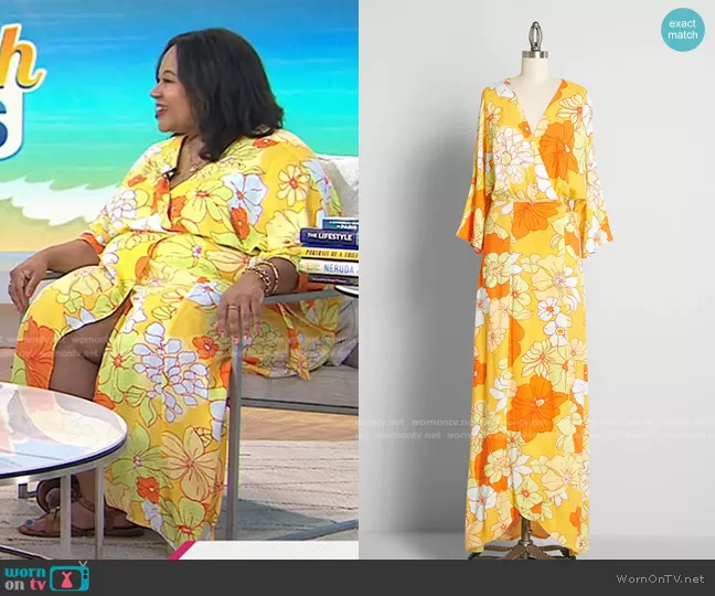 on Today on NBC was spotted wearing this yellow floral maxi dress on Today on May 25 2022's episode. 's Dress is the Living That Resort Life Maxi Wrap Dress by Modcloth.