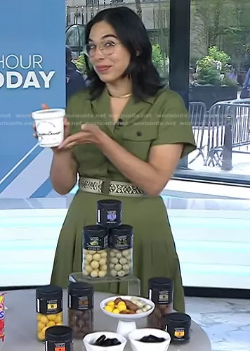 on Today on NBC was spotted wearing this green belted shirtdress on Today on May 26 2022's episode. 's Dress is the Fred Cotton Shirtdress by Max Mara.