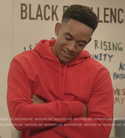 Damon (played by Peyton Alex Smith) on All American Homecoming on CWTV was spotted wearing this red hoodie on All American Homecoming on episode 'If Only You Knew' (1x04) in Mar 2022. Damon's Sweater is the Embroidered Logo Hoodie by AMI Paris.