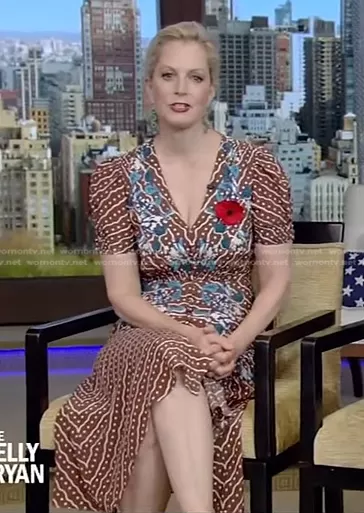 on Live with Kelly and Mark on Disney ABC Home Entertainment was spotted wearing this brown floral dress on Live with Kelly and Ryan on May 30 2022's episode. 's Dress is the Lea Dress by Saloni.
