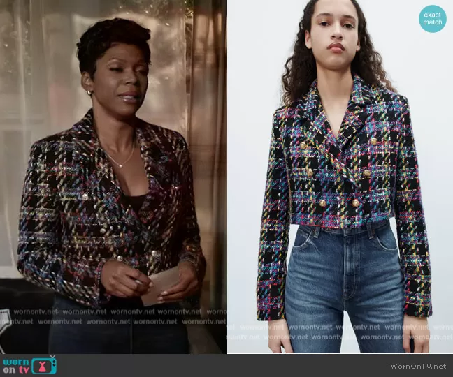 (played by ) on All American Homecoming on CWTV was spotted wearing this tweed cropped jacket on All American Homecoming on episode 'Move On' (1x10) in May 2022. 's Jacket is the Cropped Textured Blazer by Zara.
