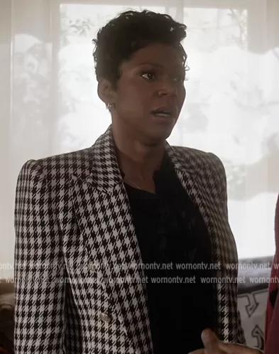 (played by ) on All American Homecoming on CWTV was spotted wearing this houndstooth blazer on All American Homecoming on episode 'Move On' (1x10) in May 2022. 's Blazer is the Houndstooth Double Breasted Blazer by Zara.