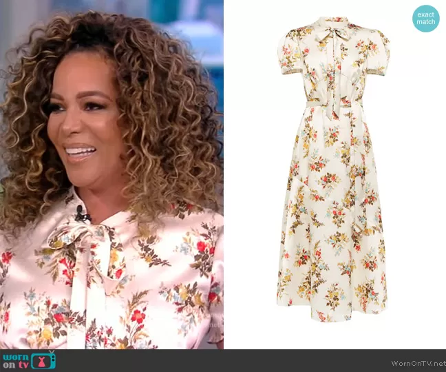 Sunny Hostin on The View on ABC was spotted wearing this white floral print dress on The View on Jun 15 2022's episode. Sunny's Dress is the Elmer Floral-Print Crepe De Chine Midi Dress by Erdem.