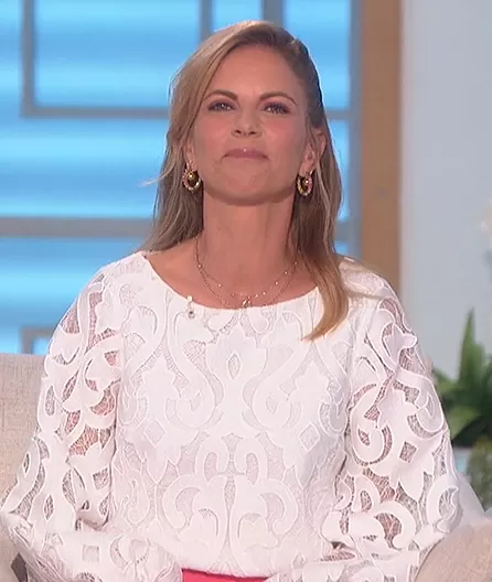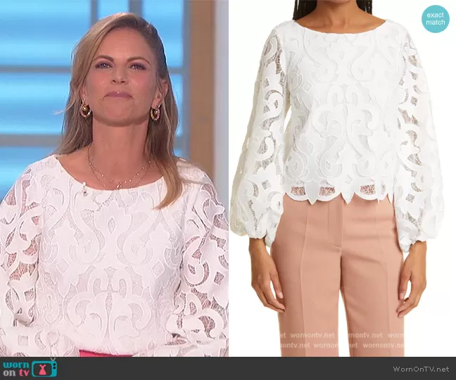 Natalie Morales on The Talk on CBS was spotted wearing this white lace top on The Talk on May 31 2022's episode. Natalie's Top is the Beverly Lace Top by Milly.