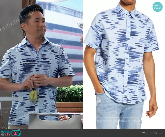 Short Sleeve Cotton Button-Up Shirt by Topman worn by Parry Shen on General Hospital