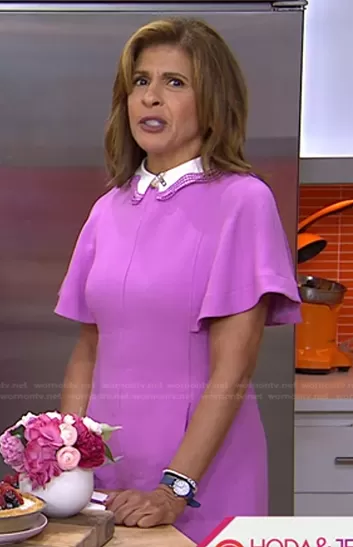 Hoda Kotb on Today on NBC was spotted wearing this pink embroidered collar dress on Today on Jun 02 2022's episode. Hoda's Dress is the Detachable Embroidered Collar Tunic Dress by Lela Rose.