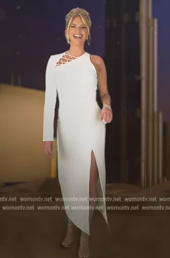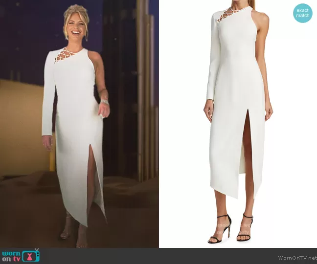 Caroline Stanbury (played by Caroline Stanbury) on The Real Housewives of Dubai on BravoTV was spotted wearing this Carolina white lace-up detail dress on The Real Housewives of Dubai on episode 'Sand Dunes and Don'ts' (1x01) in Jun 2022. Caroline's Dress is the One-Shoulder Midi-Dress by David Koma.