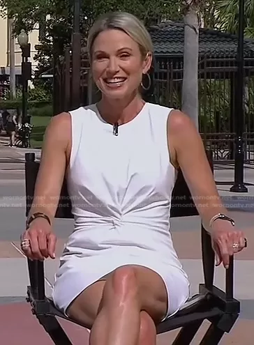 Amy Robach on Good Morning America on ABC was spotted wearing this white twisted mini dress on Good Morning America on Jun 06 2022's episode. Amy's Dress is the Andrea Mini Dress by Cinq a Sept.