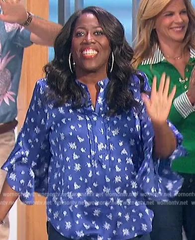 Floral Flutter Sleeve Blouse by Vince Camuto worn by Sheryl Underwood on The Talk