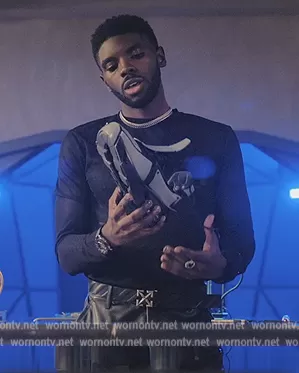 Tom Swift (played by Tian Richards) on Tom Swift on The CW was spotted wearing this black arrow embossed belt on Tom Swift on episode 'And the Liftoff to Saturn' (1x01) in May 2022. Tom's Belt is the Arrows-motif Diagonals-embossed belt by Off-White.