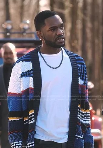(played by ) on Tom Swift on The CW was spotted wearing this multicolor knit cardigan on Tom Swift on episode '...And the 4b Curl' (1x02) in Jun 2022. 's Sweater is the Multi-Panel Jacquard Cardigan by Missoni.